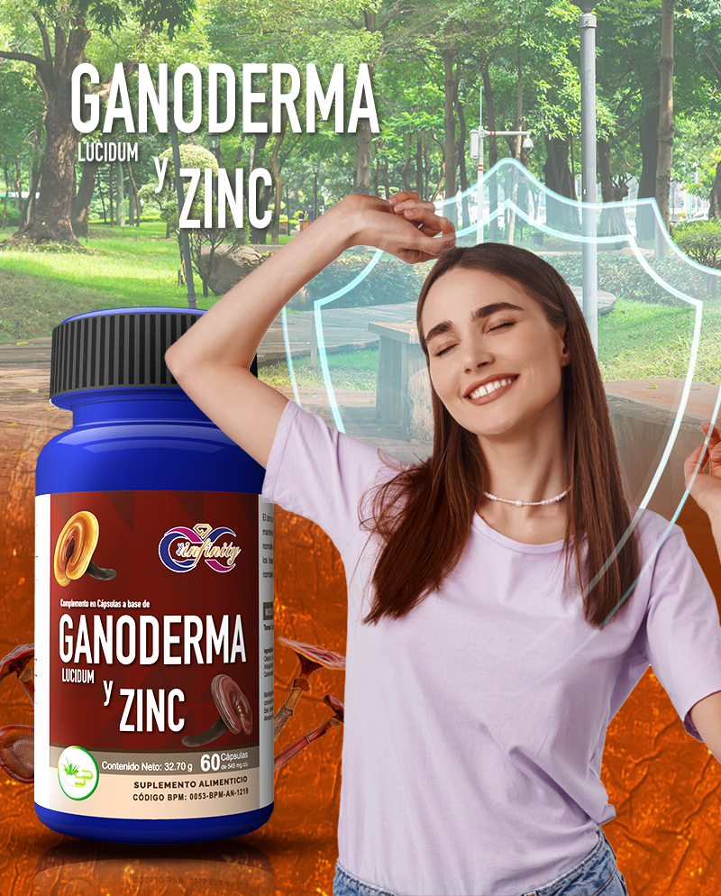 Es un suplemento que incluye extracto de Ganoderma, conocido por sus numerosos beneficios y propiedades nutricionales. Se combina con zinc, que contribuye a mantener la salud de los huesos, el cabello, las uñas y la piel en condiciones normales. Juntos, actúan de forma sinérgica para promover la salud y el bienestar general*.